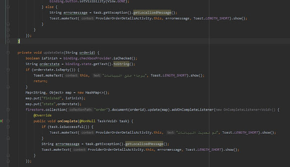 - اضافة بيانات للطلب من طرف المندوب – استخدام الفايربيز داخل الاندرويد ستوديو android studio