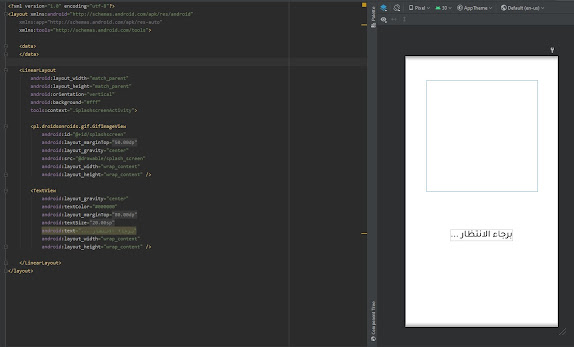 اولا قم بإنشاء Activity جديدة لنقوم بعمل صفحة إنتظار او ما يعرف بإسم splash screen وتحديد الوقت الذي تريدة , اولا قم بتصميم شكل لصفحة التي تريدها داخل xml activity التي قمت بإنشائها