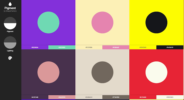 هذا الموقع pigment وجدته بالصدفة اثناء تصفحي على احد مواقع التواصل الاجتماعي وفكرتة كباقي المواقع يقدم تطبيقات لونية قريبة من بعضها ولكن بشكل مختلف وليس هذا وحسب فعند دخولك للموقع للمره الاولى سوف تجد انه عشوائي وغير منسق ولكن عندما تقوم بالنقر على اي لون سوف يخرج لك طبقات لونية قريبة له مثل فكرة adobe color وهذا ما اعجبني في هذا الموقع واحببت ايضا ان اشاركه معكم .