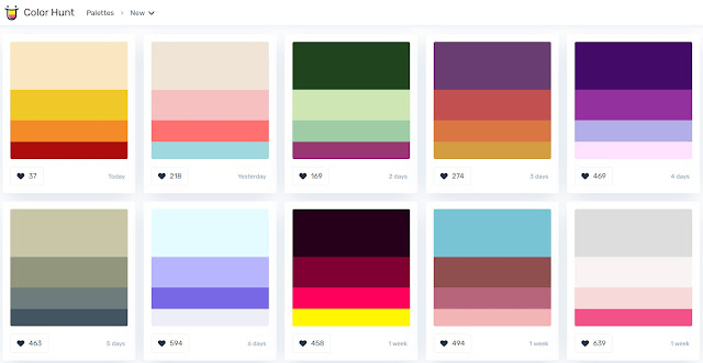الموقع الاول فهو colorhunt وهو يعد أفضل المصادر التصميم الجرافيكي المجانية التي استخدمها حيث يقدم مجموعة كبيره من قوالب تصميم اعلانات جاهزة بألوان مميزة ومتناسقه وحرفيا استخدمه بكثيره عن باقي الموقع وهو ليس كموقع canva الذي يقدم لك الصور وتقوم بالتعديل عليها ، هو فقط يضع لك مجموعة من الالوان و تقوم بإختيار اللون و التصميم والمميز انة مجاني اي لن تحتاج الدفع مقابل كل مورد أو أصل تستخدمه