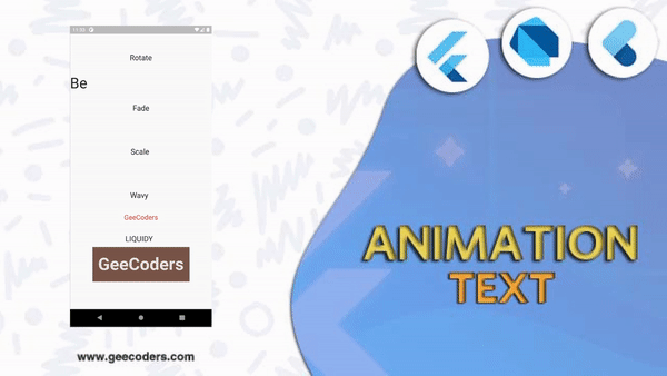 في هذا الجزء سوف يتم عمل مجموعه من الانميشن الواسعه على العناصر المختلفه في تطبيقك من ناحية النصوص ولكن في هذا الجزء سوف نحتاج الى ان نستخدم مكتبة خارجية من اجل تنفيذها على النصوص وهي من اهم المكتبات التي تستخدم في عمل انميشن على النصوص كما هو موضح بالصورة الخاصه بالمقال حيث تعد مكتبة animated_text_kit من اكثر المكتبات التي تستخدم في الانميشن بشكل كبير جدا ويمكنك استخدامها بشكل مجاني لتنفيذ عدد كبير من الانميشن كما هو موضح .