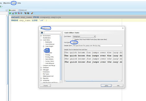السلام عليكم ورحمة الله وبركاتة مرحبا بكم في اكواد sql حيث سوف نتعلم في هذة المقالة كيفية تكبير وتصغير الخطوط وتغيير واجهة البرنامج داخل برنامج oracle database حيث كنت اعاني من مشكلة في بداية استخدامي للبرنامج لان ابعاد الشاشه لدي كبيرة فالبتالي تكون حجم الخطوط صغيره جدا وقد لا اراها جيدا وبعد بحث وجدت طريقة لتكبير الخطوط واحببت ان اشاركها معكم لانه من الممكن ان يكون شخص لديه نفس مشكلتي ان تقابله اولا يجب عليك إنشاء create قاعدة بيانات database تحتوي على جداول عن طريق برنامج orecal mysql وهو واحد من اقوى البرامج المستخدمة في انشاء قواعد البيانات ويجب ان تحتوي كل الجداول على بيانات باستخدام سيرفر خادم server او بدون يمكنك مشاهدة اول مقالة في Sql حيث تم شرح فيها كيف يمكنك بناء جدول داخل البرنامج ، ويوجد برامج اخرى لإنشاء مثل microsoft طريقة الكتابة syntax تختلف قليلا ولكن قريبة من بعضها لذلك تعلم استخدام اي برنامج حيث ان فرص العمل في هذا المجال جميلة جدا ويحتاج اليها الاداريون management بشكل كبير وجميع البرامج تعمل بي لغة sql ويمكنك متابعة الموقع لتجد اكواد جديدة new و شرح للكود ليس فقط في هذة اللغة ولكن يمكنك تحديد لغة معينة تريد تعملها وسوف تجدها في الموقع بإذن الله حيث يتم تعذية الموقع بشكل مستمر بالاكواد المختلفة في مختلف اللغات البرمجية