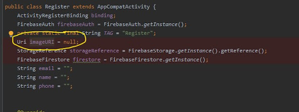 ستشاهد في السطر رقم 5 انة يأتي بالصورة من xml ويحظر مسارها uri ويتم تخزينة داخل imageURI والتي كانت قيمتها بالاعلى null عندما يتم تخزينة الصورة بداخلها ستتغير القيمة واسفل if اذا حدث خطأ سيخبر المستخدم بالخطأ الذي وقيه فية .