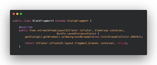 الان لكي تتمكن من استدعاء Dialog داخل الاكتفتي قم بالتوجة الى onCreat واسفلها ارفق الكود التالي ويمكنك تغيير BlankFragment4 الى اسم الفراجمنت التي تحتوي على التصميم , وتستخدم في تطوير تطبيقات الاندرويد ولتحسين مظهر تطبيقك .