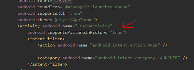 android:supportsPictureInPicture="true">ملاحظه في نهاية سوف تجد هذة العلامة > اضف قبلها الكود السابق وليس بعدها كما في الصورة
