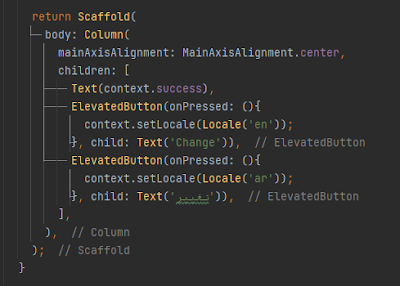 الان لاستخدام النص سوف تقوم بعمل context ومن ثم المفتاح الخاص بها , ولكي تقوم بالتغيير بين اللغات استخدام setLocale .