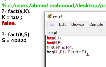 كود برنامج برولوج لحساب مضروب الرقم – prolog code to calc Factorial the number