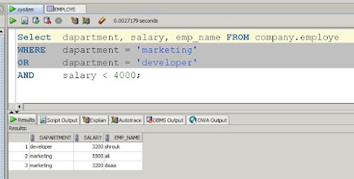 - شرح استخدام and و or و not في برنامج اوركال داتا بيز ولغة SQL