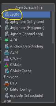بعد ظهور ملف raw انتقل اليه اونقر كلك يمين واختر new وبعدها اختر scratch file وابحث عن json واخترها .