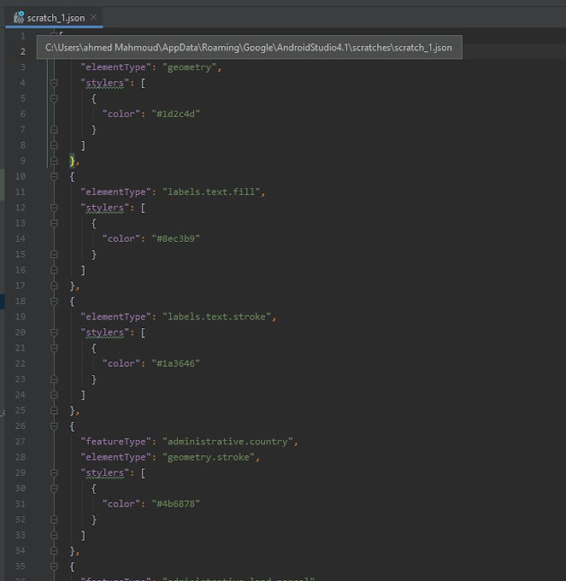 تنوية في عملية تطوير تطبيقات الهواتف الذكية سوف تحتاج الى التعامل مع ملفات json كثيره ع الاغلب لذلك ركز جيدا بالشرح ( صحصح 😂 ) , بعد ذلك قم بلصق الكود داخل الملف وبعدها ضع مؤشر الفاره عليه وسوف يخرج لك موقع الملف احفظ المسار وتوجة اليه لتجد الملف الذي قمت بإنشاءه بداخل المسار المحدد .