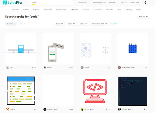 الان توجة الى اي موقع لتحميل صورة json مثل موقع lottiefiles وهو واحد من اكبر المواقع المخصصة لتقديم صور متحركة بصيغة json و gif يوجد منها المجاني ويوجد منها المدفوع يمكنك البحث في الموقع عند ما تريد وستجد نتائج مذهله ان شاء الله