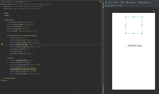 الان توجة الى الكود xml الخاص بك وضع الكود التالي في المكان الذي تريدة