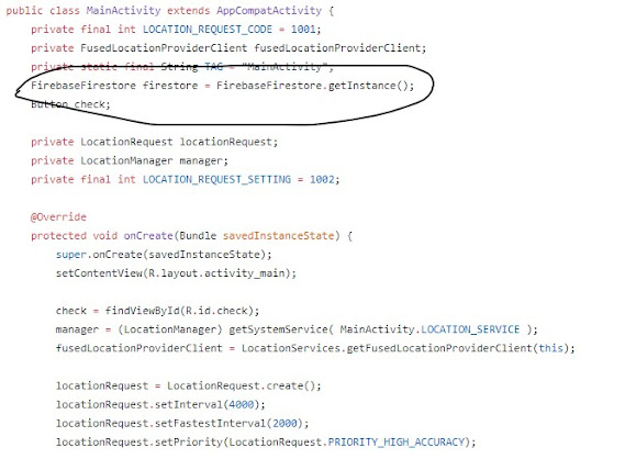 FirebaseFirestore firestore = FirebaseFirestore.getInstance();الان داخل فانكشن getLastLocation قم بإدراج الامر التالي وهو Map وسوف نضيف فيه بيانات خطوط العرض والطول للمستخدم , بعد ذلك سوف يقوم بعمل collection باسم location داخله document باسم userid ” يمكنك استبدالها ب عنوان المستخدم ولكن استخدم authentication ” , بداخله collection اخر باسم getLastLocation وبداخله document عشوائي يمكنك عمل collection و document واحد فقط الامر يرجع اليك , بعدها ارسل البيانات المرسله في شكل map وهي من اهم شروط تطوير تطبيقات الموبايل لكي لا تحدث معك مشاكل .