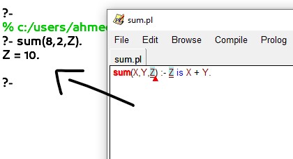 sum(X,Y,Z) :- Z is X * Y.- كود برنامج برولوج لحساب مساحة الشكل البيضوي – ellipse prolog program