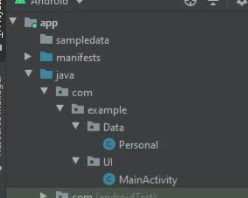 قم بإنشاء زر ونص داخل xml وبعدها قم بتعريفهم هنا في MainActivity بعدها قم بتمرير المتغيرات التي قمت بعملها داخل كلاس Personal وبعدها قم بعمل ميثود اخرى تقوم بتغيير النص الى الاسم الذي قمت بتمريره .