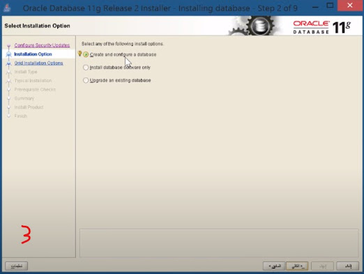 3- في هذة الخانة اختار اول خانة وهي creat and cinfigure a database