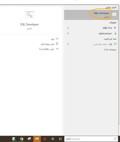 7- بعد تنصيب البرنامج يمكنك التوجة الى قائمة ابدء والبحث عن sql developer كما في الصورة وانقر عليه .