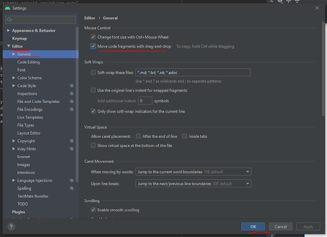 بسم الله الرحمن الرحيم متابعي موقعنا الاعزاء مرحبا بكم في مقالة جديدة في برنامج android studio , في هذا المقال اقدم لكم كيفية تكبير وتصغير الخط داخل الاندرويد ستوديو عن طريقة بكرة الماوس يعاني كثير من المطورين ضعف ف النظر بسبب كثرة الجلوس امام الجهاز الكمبيوتر لفترات طويلة ومع الوقت يصبح لدية مشكلة في القراءة على الحاسب خصوصا إذا كانت الكلمات صغيره ولكن انصحك دائما بتشغيل الوضع الليلي اثناء استخدام جهازك , حيث يتم استخدام هذا البرنامج لتطوير (development) وبرمجة تطبيقات الاندرويد حيث يعمل اندرويد ستوديو في بيئة xml للتصميم ويمكن تطويرالتطبيق الخاص بك بلغة الجافا او الكوتلن وقد سبق وان قدمنا لكم اكواد برمجية لي كلاتا اللغتين ، حيث يتعد لغة الكوتلن تطوير من جوجل للجافا وتعد اللغة الرسمية لتطوير التطبيقات لدى جوجل ولكن ما يعيبها ان البرنامج يكون مساحتة كبيرة خلافا عن الجافا الذي تكون مساحتة قليلة ، ويفضل تحميل اخر نسخة من الاندرويد استديو لانها تحوي مميزات رهيبة وتسهل على المطور عملية تطوير التطبيقات .